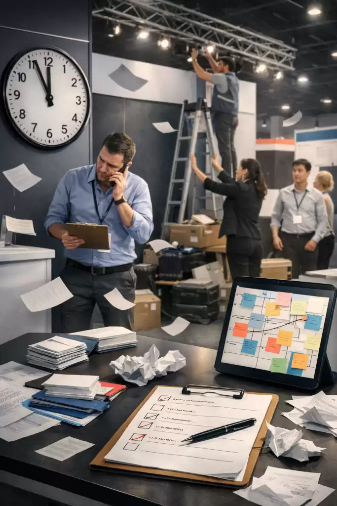 Quando essa operação não é bem estruturada, surgem problemas que impactam diretamente a participação da empresa no evento.
